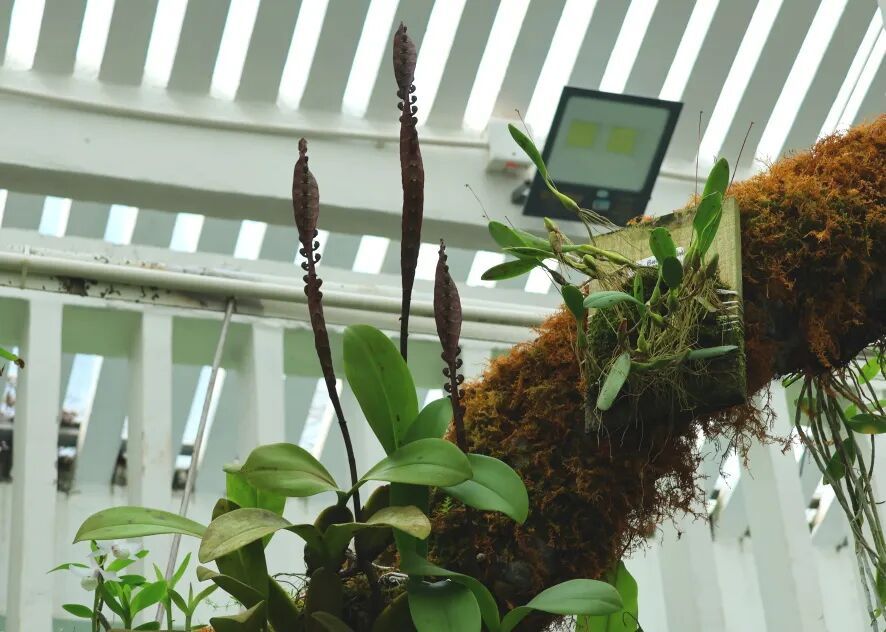 除了石豆兰家族,本次升级还新增了多款珍稀特色植物。如今的生态馆,涵盖了竹叶石斛兰、大蓝羚羊石斛、聚豆树兰等多种兰科植物和女王鹿角蕨等二十余种蕨类植物。