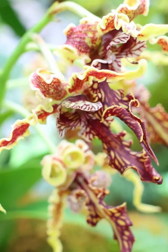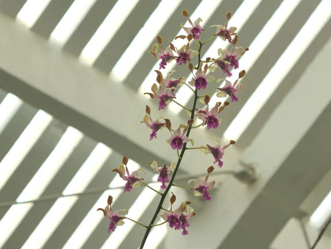 大蓝羚羊石斛,因花瓣细长、向上扭曲似羚羊角而得名。花形优美独特,多花,花茎能长到将近150厘米,堪称兰中珍品。